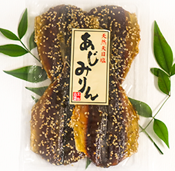 その日水揚げされた新鮮な鯵を即、当店特製のみりんのたれに数日間漬けこみ、ゴマを振りかけ乾燥。風味豊かなみりんとゴマが食欲をそそります!
